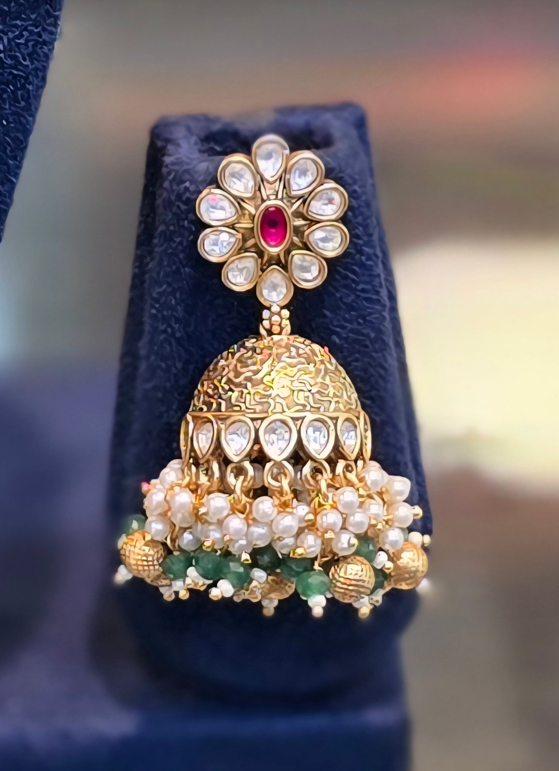 Complete Set: Includes a pearl-heavy choker and statement jhumki earrings for a striking ensemble.